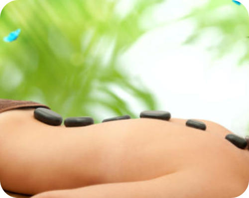 whilst holding onto a hot stone. Hot stones are laid along your spine, in